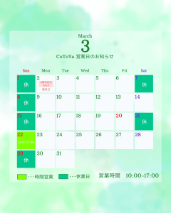 「コトを想像し、コトを創り上げていく」「colorが創る世界・暮らしを楽しんでほしい」「あなただけの『いろどり』を見つけてください」「想像を超えた創造を提供します」イベント企画・制作セミオーダー帆布バッグNEW 2026年2月19日 お知らせ 臨時休業のお知らせ 2026年1月26日 お知らせ 4周年の感謝を込めて。CoToYa Anniversary SALE(最大50%OFF) 2026年1月12日 お知らせ 2026年も出展します!ハンドメイド通販サイト、クリーマの『HandMade In Japan Fes』